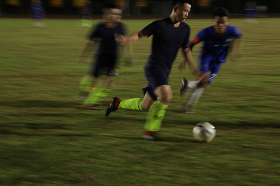 整场比赛打得十分火热,双方的攻势此起彼伏。上半场进行到一半,工程球员把球从球门的侧边踢靠球门,12号球员默契跟上顺势一脚,成功拿下全场首球。随后攻势有增无减,没有丝毫放松。下半场,财管公司进行猛烈进攻,我方球丝毫不弱不断截球,场上的形势也越来越严峻,时时发起高潮,场边的观众也不断的激情怒吼。时间只剩1分钟财管公司得到了一次点球机会,在我们工程守门员的奋力一扑之下,财管公司失去了最终机会。终场,比分定格在1:0。
