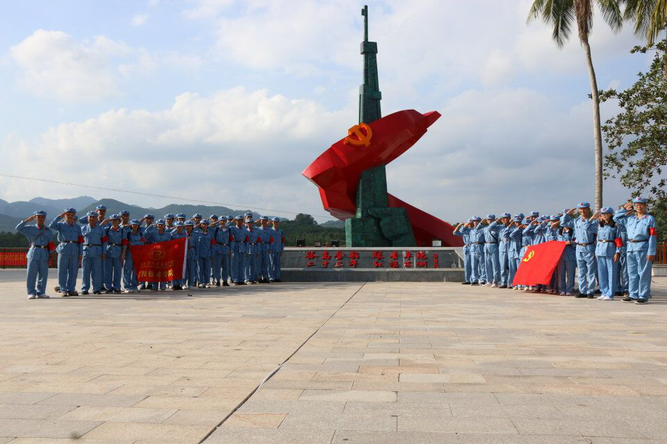 公司近七十余人,排列整齐,首先来到琼海博鳌博物馆,琳琅满目的文化遗物,无不展示着古人精益求精的精神,匠人们的伟大智慧;而后我们又驱车来到椰子寨战争遗址,退休老党员很高兴我们组织来缅怀先烈,重温革命历史,跟随他的讲解的步伐,我们了解了红军事迹,瞻仰了革命先烈;最后,我们来到了红色娘子军纪念园,再现了娘子军当年艰苦的生活,战斗的光辉历史,对着党旗宣誓,我们仿佛又回到了她们曾经生活的年代,更加了解了她们传奇的战斗故事!
