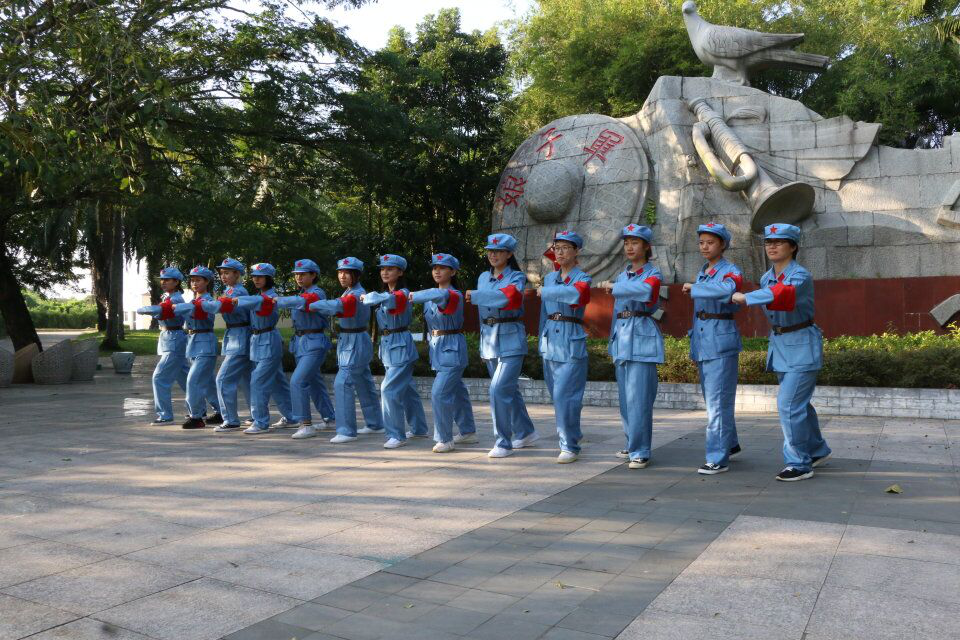 我们高唱革命歌曲,聆听英雄事迹,参观博鳌博物馆,瞻仰革命先烈,追忆红军精神。