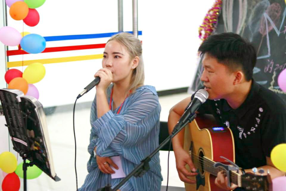 今天,除了公司新生到三栋玻璃房报到之外,还有各公司的新生来办理银行卡激活业务,但我们仍维持秩序,让员工们有序排队办理。王忠经理亲自带领新生前来三栋办理银行卡激活业务。在此期间,员工服务中心积极地提供了凳子和水给前来办理银行卡激活业务的新生们。不仅如此,梁老师还现场温情演唱,热情欢迎新生们的到来。