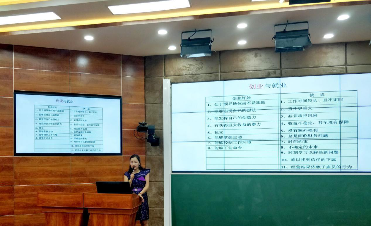 主要是以演讲以及互动的形式开展的。主讲人沙娜凭着自己在多场讲座中累积的经验和丰富的阅历,给员工讲解及分析了许多关于创新创业的案列以及市场的最新行情,希望同学们能扩大知识面提升专业技能,积极参与老员工创新创业;讲座期间,沙娜老师现场让员工积极参与趣味测试,进行自我了解。此次讲座丰富多彩,语言生动幽默且具有哲理,同学们均感到受益匪浅。