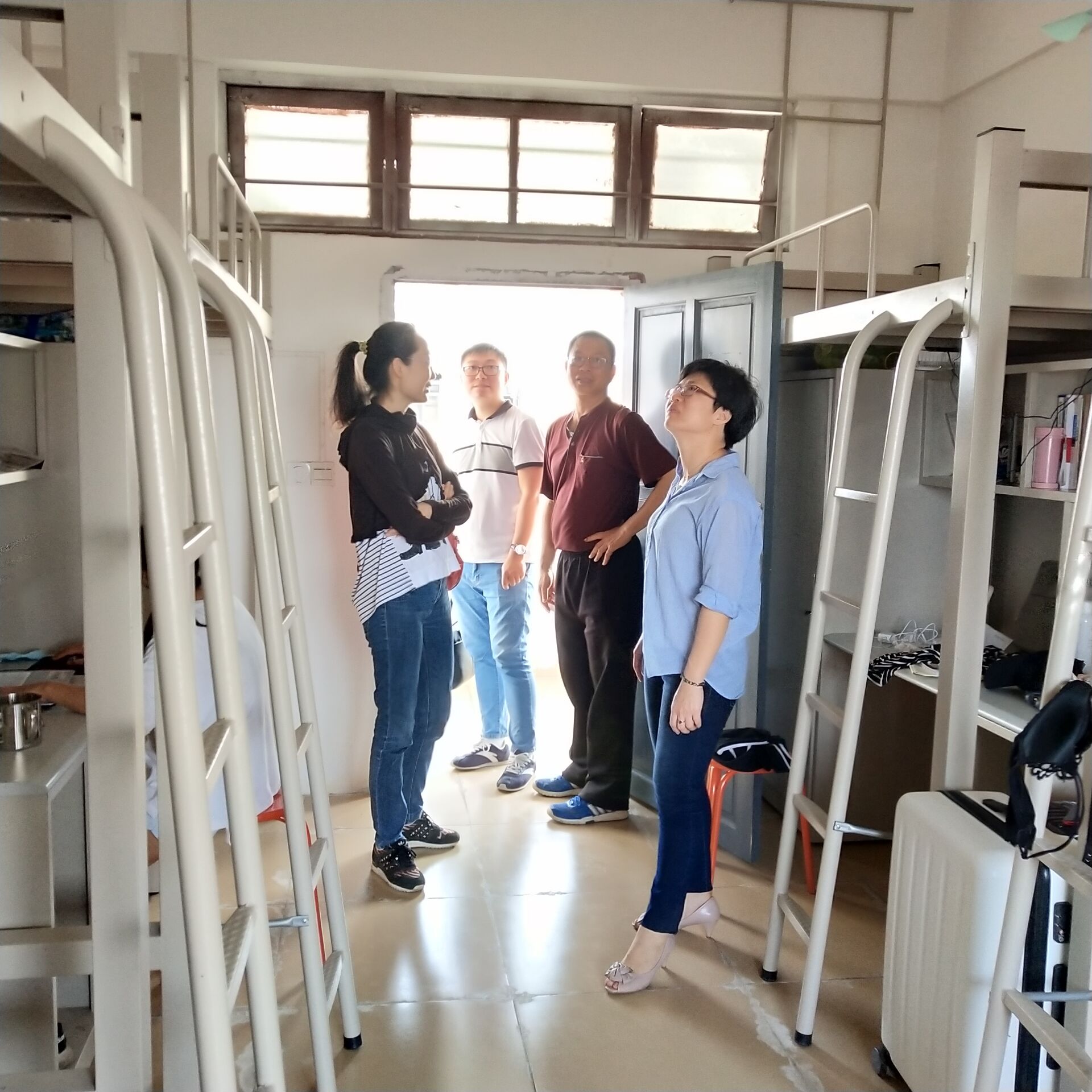 3月5日讯(青年媒体中心报道),为了消除宿舍安全隐患,创造良好卫生环境,3月4日16时许,公司书记陈继敏、副书记陈亚芳、办公室主任梁其钰、团学负责人唐图、辅导员周恺、徐超、代晓明与公司员工会工作人员等一行分别前往7栋、10栋、11栋员工宿舍楼进行慰问走访。