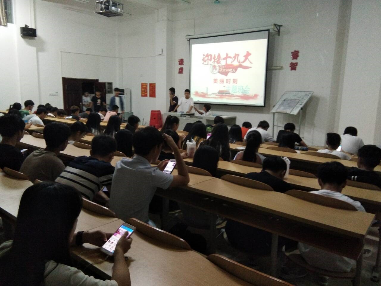 为了更好的宣传十九大的精神,深刻理解十九大精神的含义,同时庆祝十九大的胜利召开,在工程技术公司团总支的指导下,于10月24日各班班委在各自的班级举行了一场喜迎十九大的主题班会,各班级的同学们积极参与,各年级辅导员也在班会现场巡视,对班会内容,思想进行指导。
