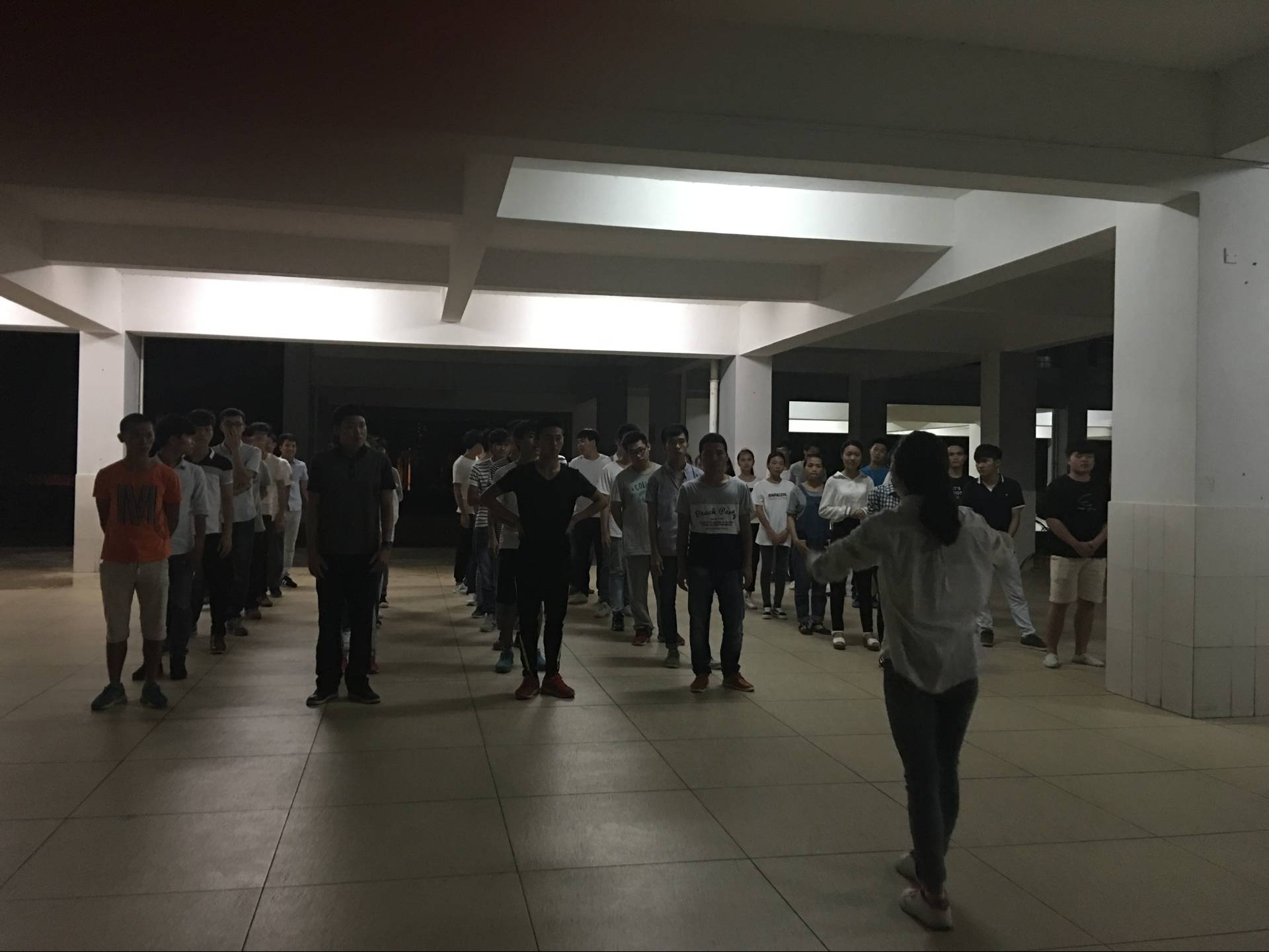 训练开始后,首先由赵丽学姐整理好队形,维持好秩序,进行出场队形的演练。接着由专业导师为同学们纠正其中的不足,并提出一些关于创新的好点子,与此之外,老师亲自教同学们做每一个规范的动作和在做操过程中队形的变化。老师的想法也深的民心,同学们都非常积极的配合着老师和学姐,一丝不苟,精益求精。在老师一个多小时的指导下,同学们以一个耳目一新的面貌展示在众人面前,实在叫人叹为观止。但是也存在一些不足,由于有些动作的矫正和中间的队形变化,部分同学们不能较快的吸收,所以导致队伍有点不整齐。不过我相信通过后面几天的练习,公司同学一定会交出一份满意的答卷。