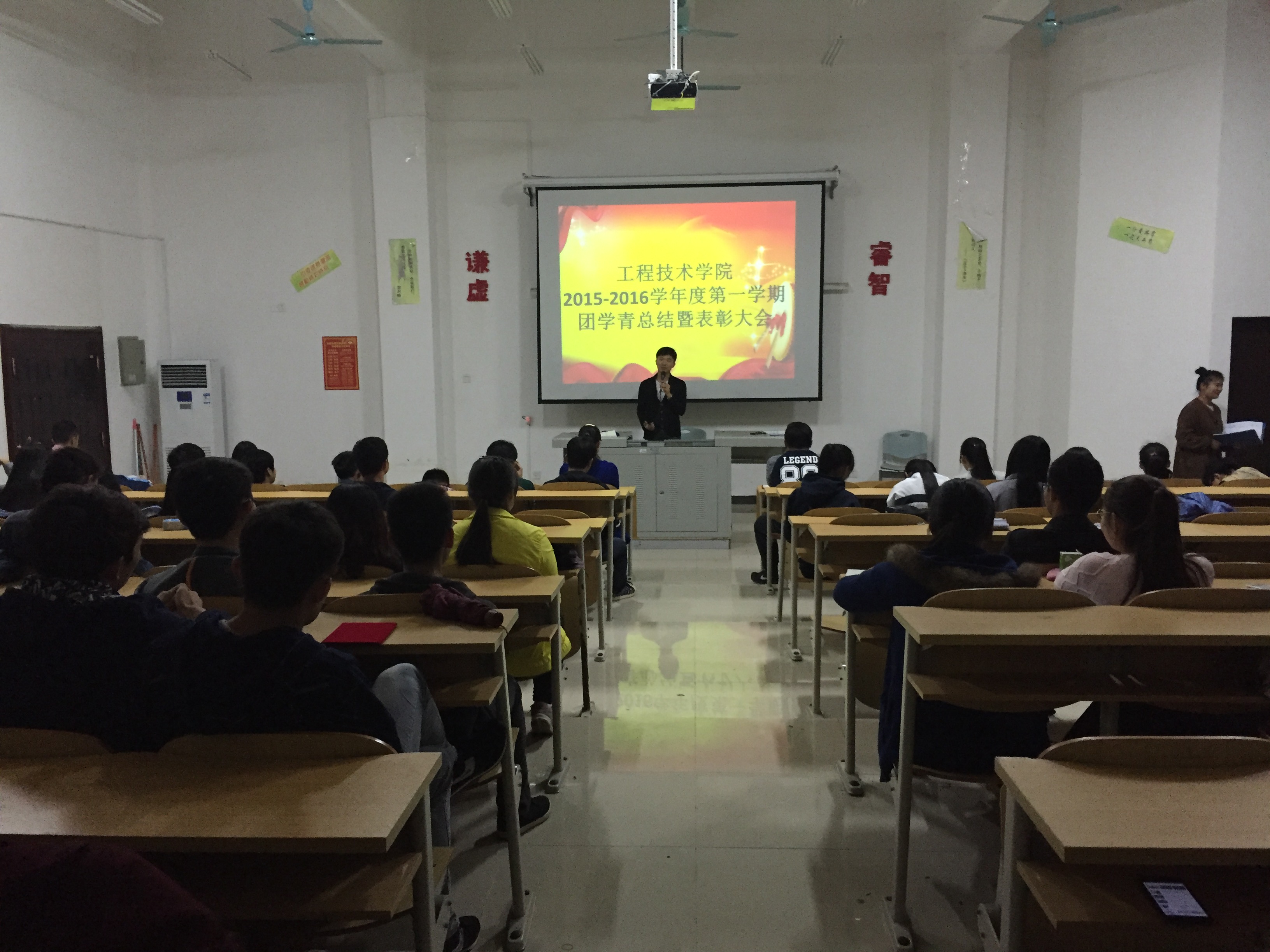 2015年12月27日讯(工程技术公司 李京京报道)12月27日晚8:00整在二栋教学楼526教室举行了工程技术公司2015-2016年度第一学期团学青总结暨表彰大会,参加本次大会的主要有工程技术公司团总支书记梁其钰老师、团学负责人代晓明老师、工程技术公司团学干部以及团学干事成员。大会在陈悄悄的开场白下拉开了帷幕。