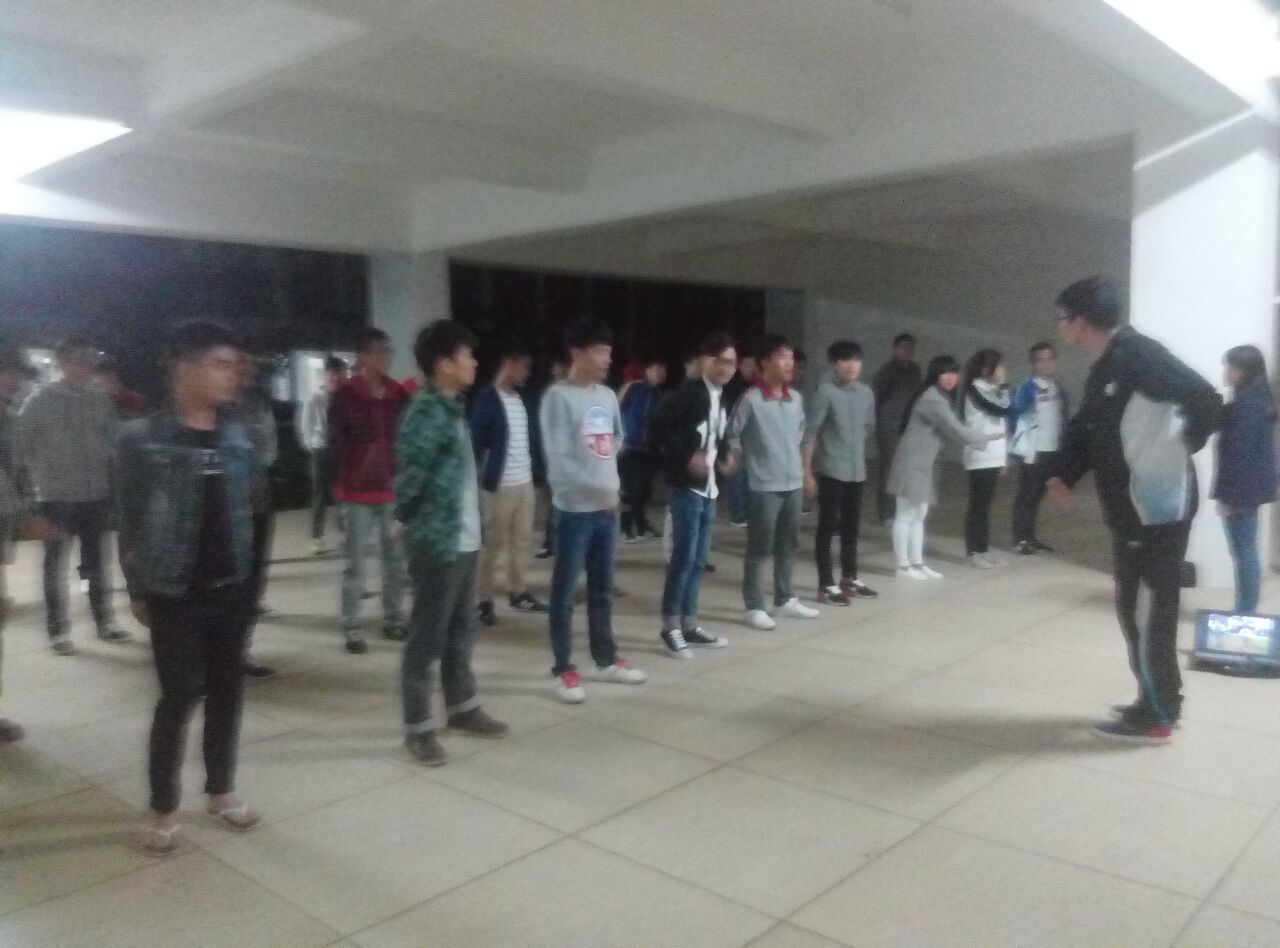 7:30分各班在班长的带领下到了指定位置训练礼仪操,有的班级在练手势礼、有的班级在练握手礼、有的班级学的比较快已经全部练完,现在对动作的规范性做强化训练。8点整,主席团各成员到达二栋楼下,开始一个班级一个班级的走访检查。首先让在训练的班级对这两周所学的礼仪操内容从头展示了一遍,主席团成员对班级所呈现的问题进行现场指导,并做示范为员工们演示。对于没练完的班级鼓励加劲,希望他们能尽快的学完礼仪操,然在进行细节的调制加强训练,不懂得动作要尽快提出来,学姐学长为他们答疑解惑。