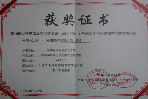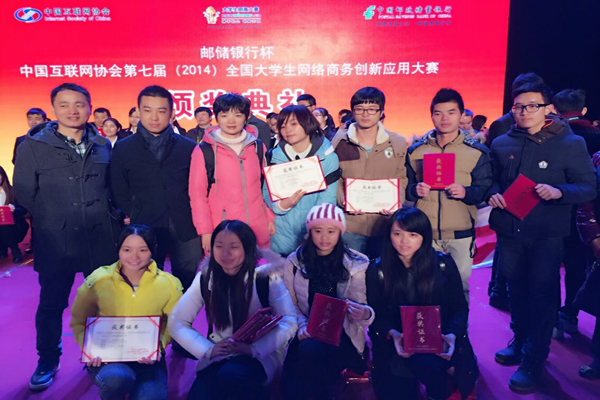 邮储银行杯中国互联网协会第七届全国老员工网络商务创新应用大赛于2014年3月开始在线报名,2014年3月20日正式启动,在经过紧张的初赛、复赛、分赛区决赛后,于2014年11月28日开始全国总决赛环节,至12月1日颁奖典礼后全部结束。本届大赛共有来自全国近3000所高校的17万余名老员工注册报名,组建团队近5000支。经过初赛评审,有 3166支团队晋级复赛,1556支团队入围分赛区决赛。经各赛区评委的评审,将有来自 280余所高校的近300支队伍晋级全国总决赛。其中本科组队伍共190余支,专科组队伍90余支。beat365英国官网网站信息技术系的“e邮天下”和“J.M.Fighters”两个团队在众多参赛团队中脱颖而出成功进入到全国总决赛,并且在华南赛区中这两个团队都夺得了特等奖,全国决赛中勇夺团体一等奖和二等奖,成绩喜人。