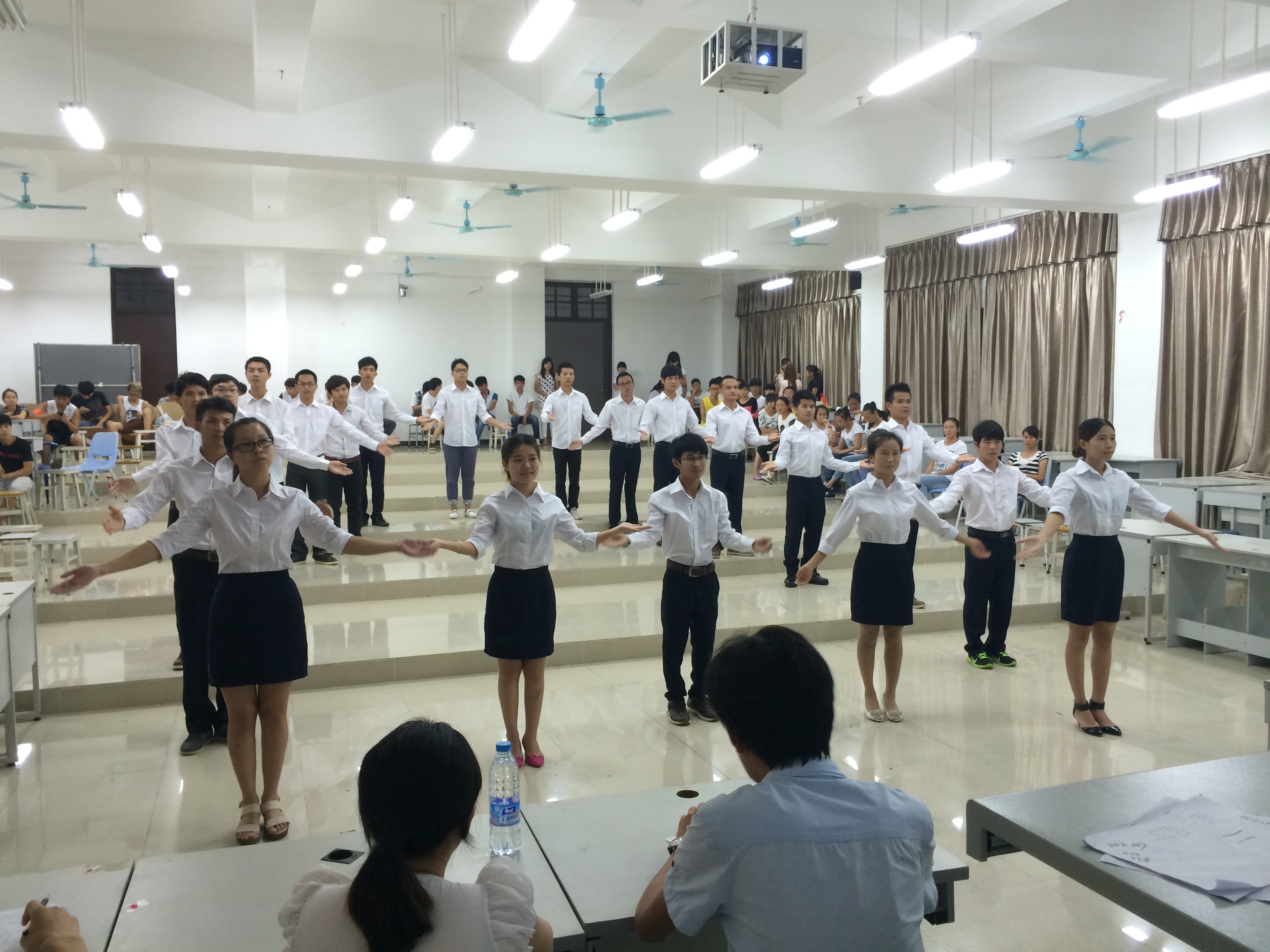 本系6月13日讯(信息技术系 钟超报道)“让心灵在双手中舞动,让关爱于指尖处绽放”,由12级员工会心理部部长谭业同学组织策划的手语操比赛,于6月12日晚7:30分,心理手语操比赛在本系2栋教学楼408教室内举行。本系13级全体新生共同参与了本次手语操比赛。此次比赛评委从每班选出一个代表,然后进行综合评分,本着“公平、公正、公开”的原则,一旦到自己班的比赛队伍,代表本班的评委将不能参与评分。本系党总支书记陈继敏出席了比赛并担任观察员,陈继敏书记在比赛现场发表了重要讲话,他指出:“手语操作为一种表达思想情感的特殊方式,是集体参与进来的心理保健操。员工在优美的旋律、抒情的动作中,感情与意境相融合,肢体语言与心理情感相协调,达到强身健体同时用肢体宣泄法把自己身体的许多情绪,尤其是负性情绪释放出来,愉悦身心、提高自信心,感悟生活的美好、体味人生的真谛,达到内在与外部的完美统一”。