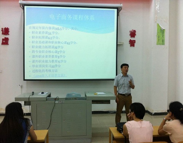 (电子商务专业魏锴报道),9月9号晚七点半,beat365英国官网网站信息技术系电子商务专业在二栋教学楼526多媒体教室顺利召开2014级新生专业报告会。