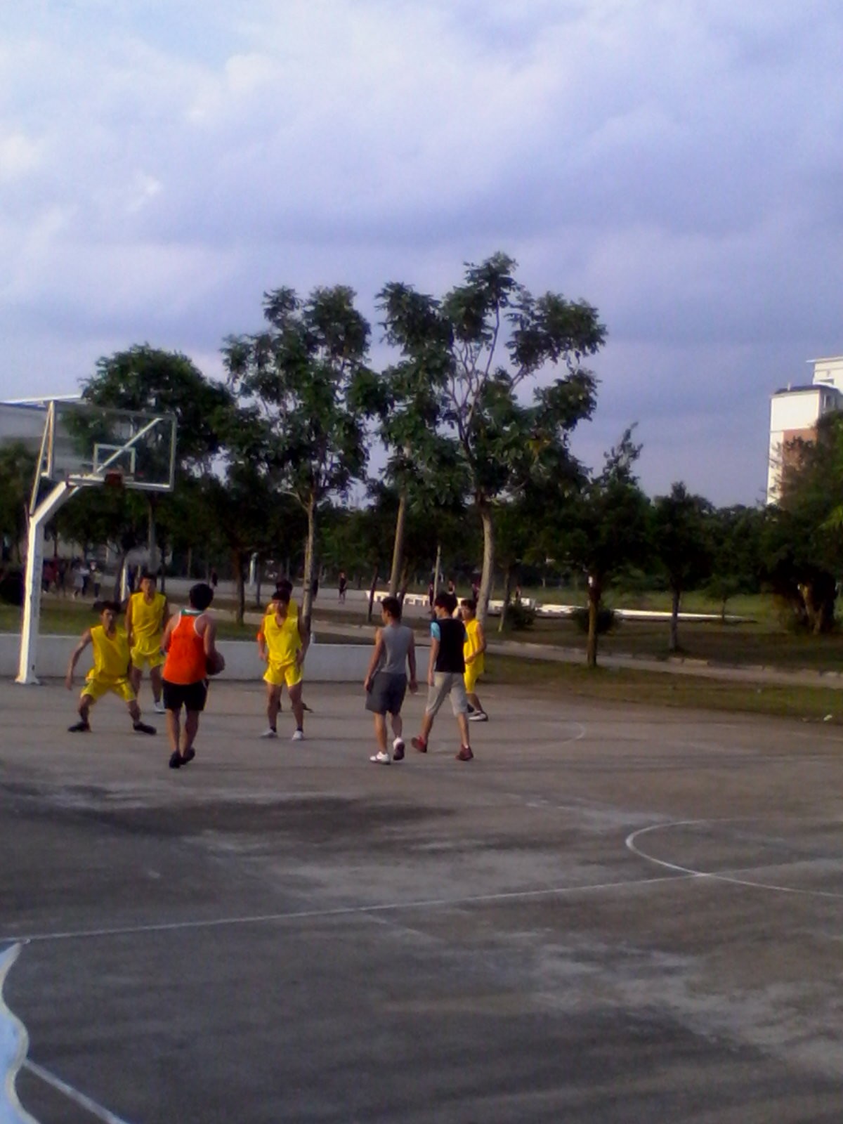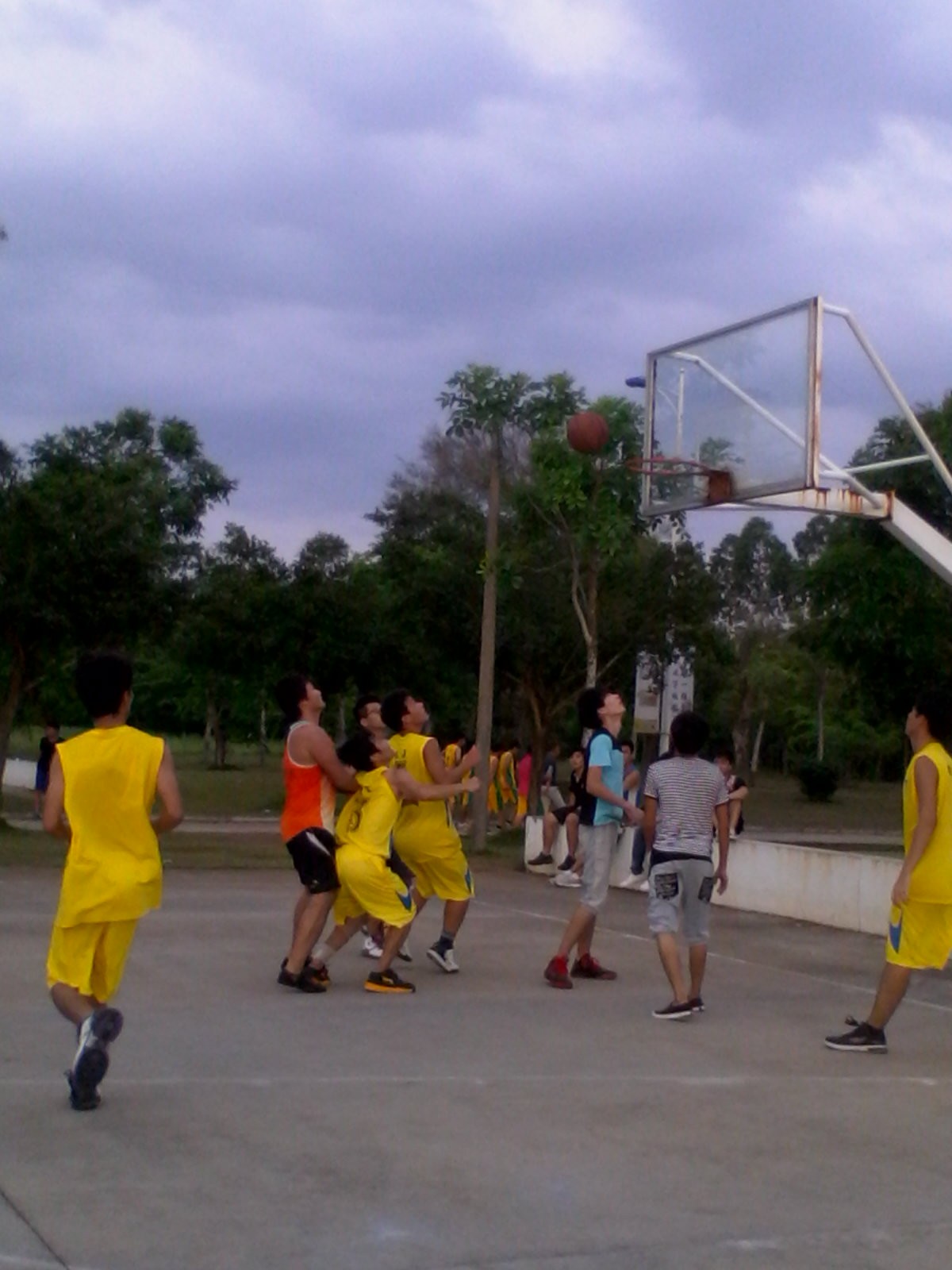 本系5月9日讯(信息技术系 丁燕琴报道)5月9日下午17:00,由信息技术系员工会组织的以“青春如火 等你来投”为主题的迎新杯篮球赛第二轮第二场淘汰赛在篮球场激烈进行,参赛双方分别是13电商1班、 13电商2班,其中邢小亮和吴如电担任此次比赛的裁判。