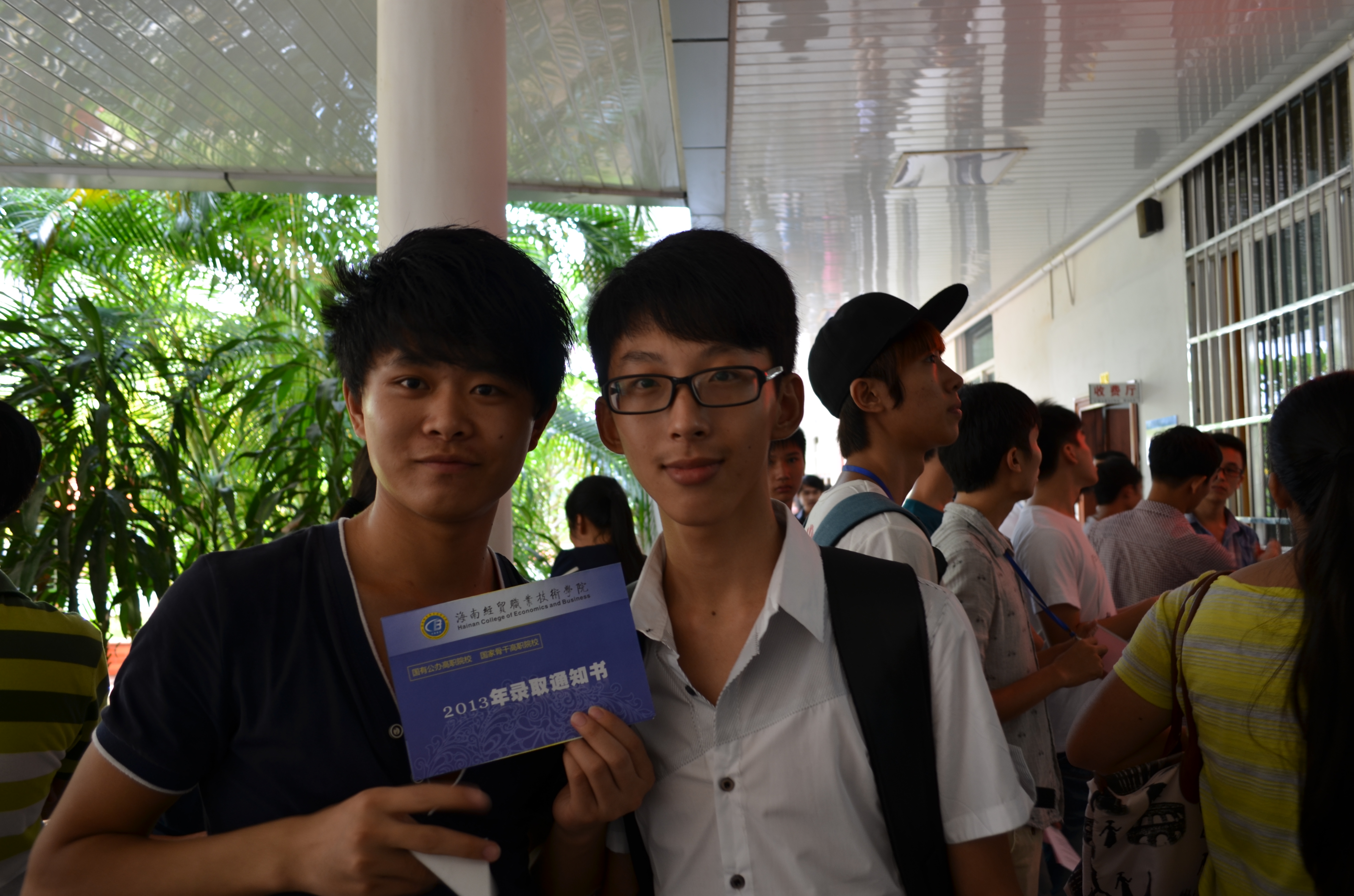 “请让新生轻松开始老员工活”。在新生完成所有的报到手续,让新生在报到完成之后,卸下行囊交给迎新志愿者,放松心情去欣赏美丽的海经贸校园。
