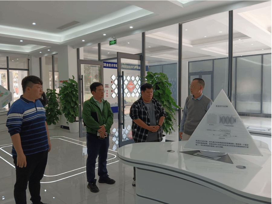 考察团一行深入走访了ICT产教融合基地,详细了解了基地的建设成果与运营模式。在随后举行的座谈会上,各方围绕人工智能产业人才培养与引产入校问题进行了深度的交流,在人才共育、资源共享、标准共建等方面交换了意见。