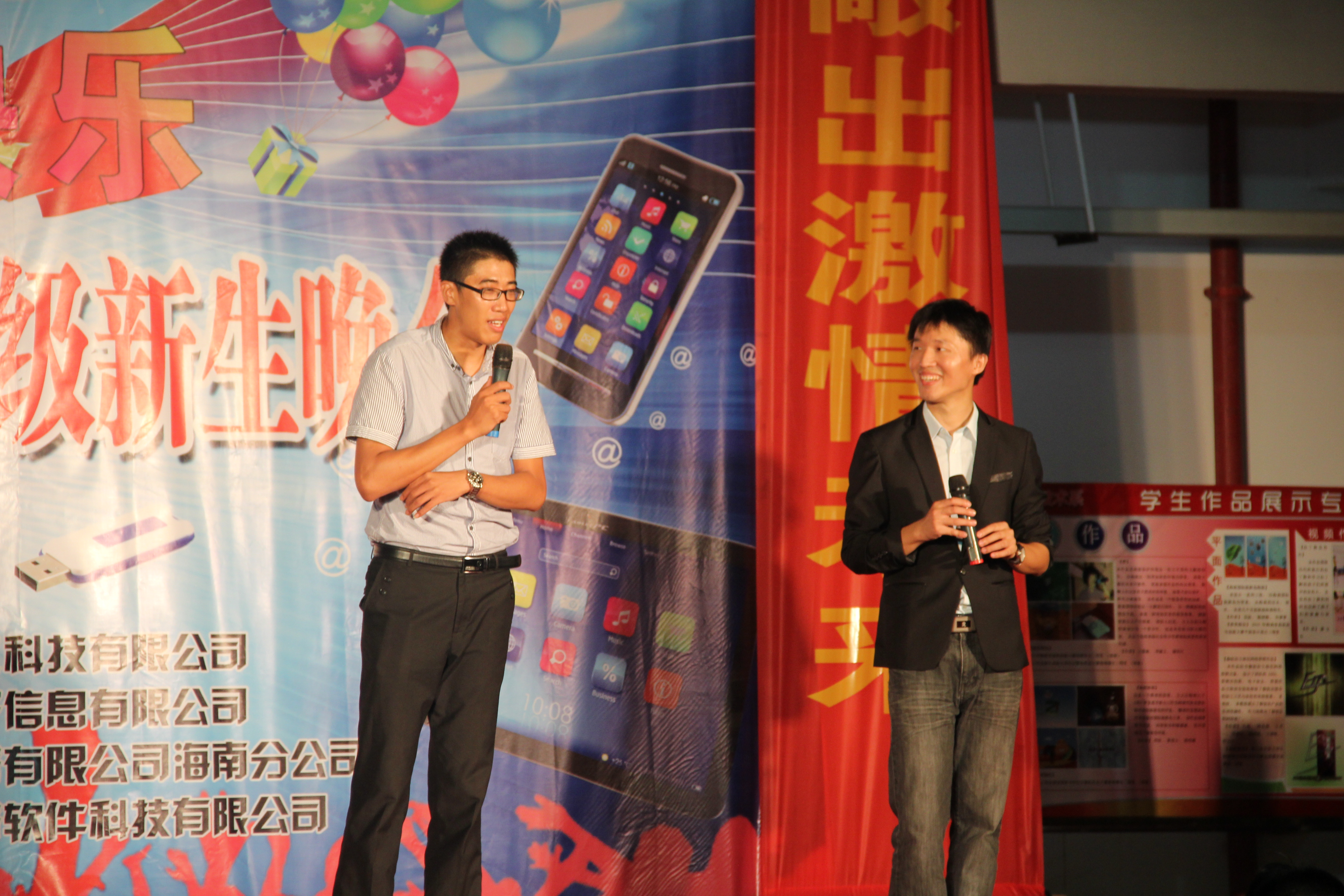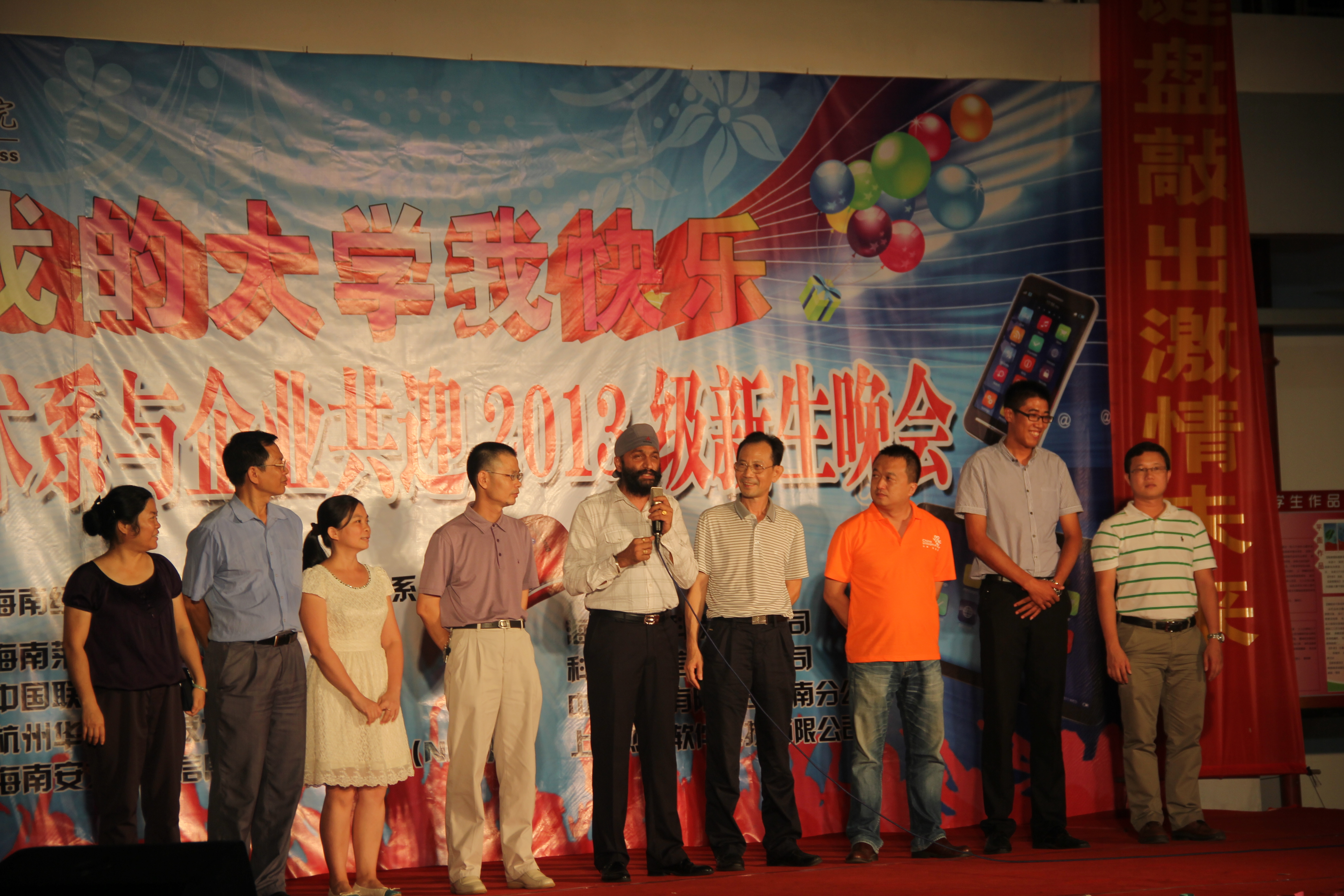 (信息技术系宣教部报道)9月27日晚8点整,信息技术系在二栋教学楼楼下以“我的大学我快乐”为主题举办信息技术系与企业共迎2013级新生晚会,特约嘉宾有:我系党总支书记陈继敏,系主任李丽蓉,系副主任王凡帆、计算机网络技术专业负责人王岩、电子商务专业负责人单继周、计算机多媒体技术专业负责人李兵、员工党支部书记陈亚芳、辅导员陈青云、龙腾老师,另外还有我系各个专业的老师出席晚会现场。出席本次迎新晚会的企业有中国联通海南分公司、杭州华三科技有限公司、海南安艾艾迪有限公司、海南莱福科技公司、海南英立科技有限公司。