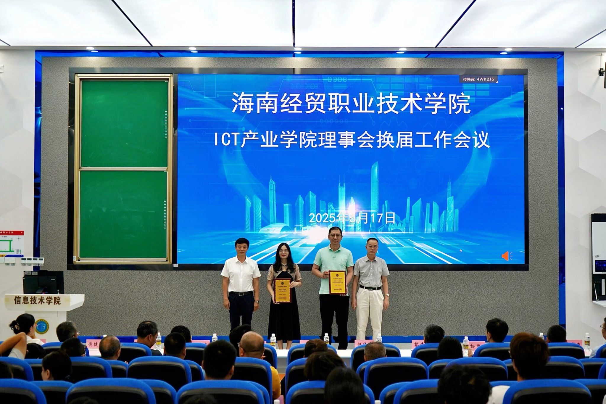 会议结束后,全体与会人员前往产业公司一楼合影留念,为本次重要会议画上了圆满句号。此次ICT产业公司理事会换届工作会议的成功举办,对于提升公司办学水平、完善治理结构、促进ICT产业人才培养具有重要意义。未来,ICT产业公司将在新一届理事会的引领下,充分发挥各方优势,不断探索创新,为海南地区ICT产业的发展注入新的活力,培养更多适应行业需求的高素质技能人才。