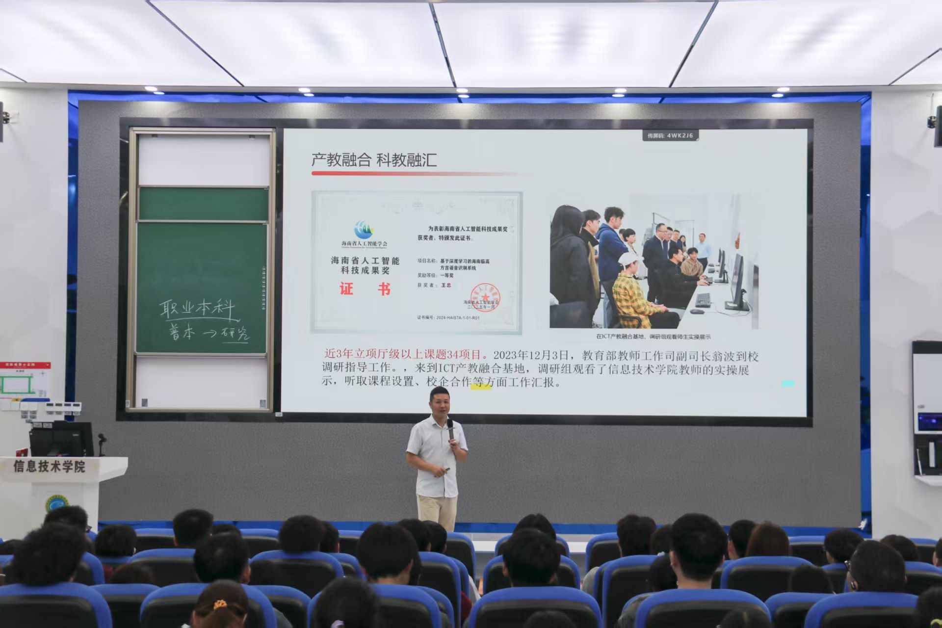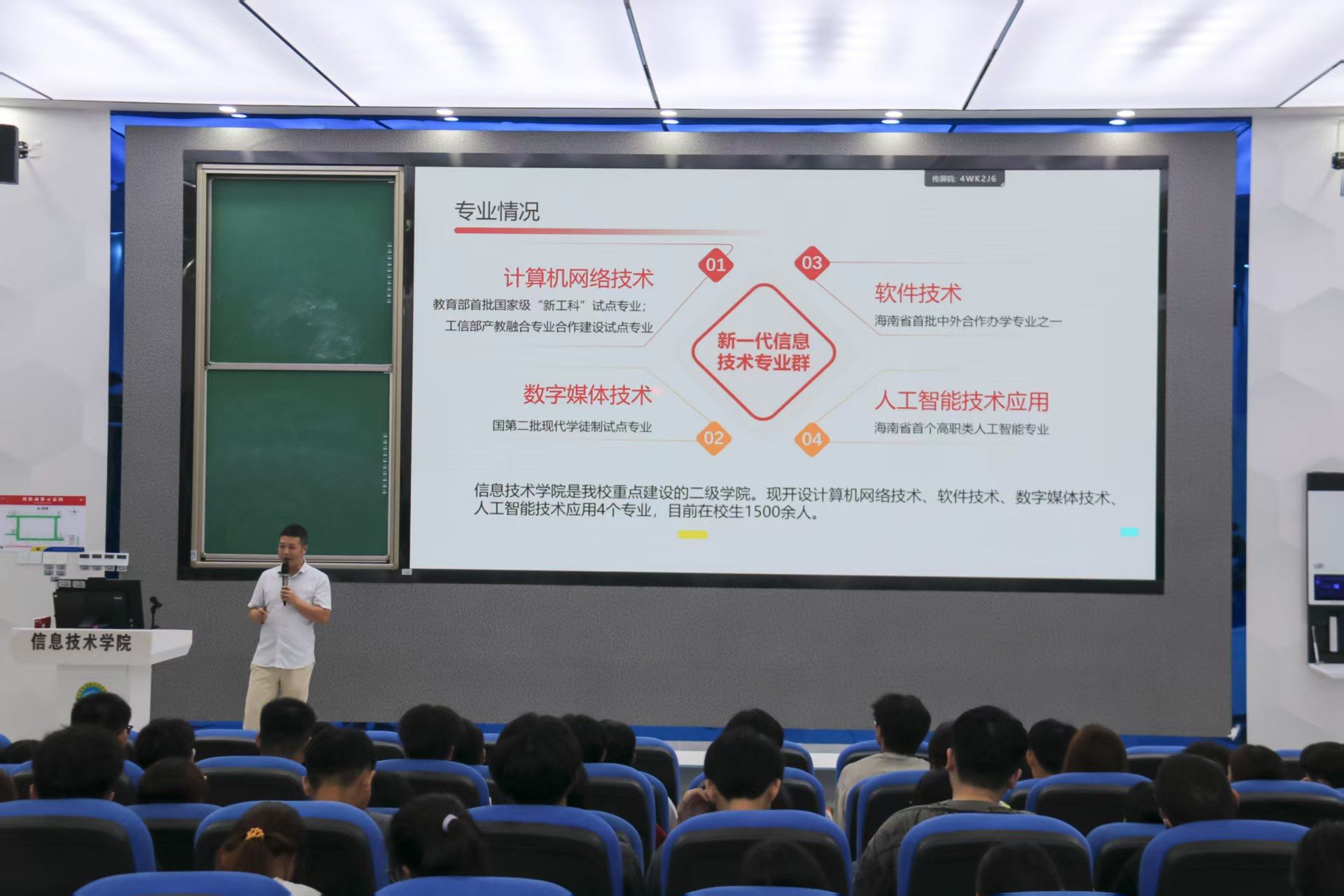 在公司实力板块,康东副经理详细介绍了beat365英国官网网站的专业布局与核心优势,公司现有软件技术、计算机网络技术、数字媒体技术、人工智能技术应用及新增的大数据技术五大核心专业,专业设置紧跟数字时代发展,聚焦能学好、能就业、有前景的精品方向。其中,数字媒体技术是国家现代学徒制试点专业,2024年通过工信部验收,软件技术为与海科合作的“3+2”联办专业,员工通过考核后,可进入海科继续攻读本科,实现高职到本科培养的无缝衔接,人工智能技术应用是海南省首个高职人工智能专业。此外,公司还拥有全海南屈指可数的海南省人才团队、4个省级科研平台,与科大讯飞等企业共建实训基地,2024届毕业生毕业落实率达96.35%,在海南省高职院校位居前列。今年特意将招生规模从往年600人缩减到100余人,确保新生能享受更优质的教学资源。