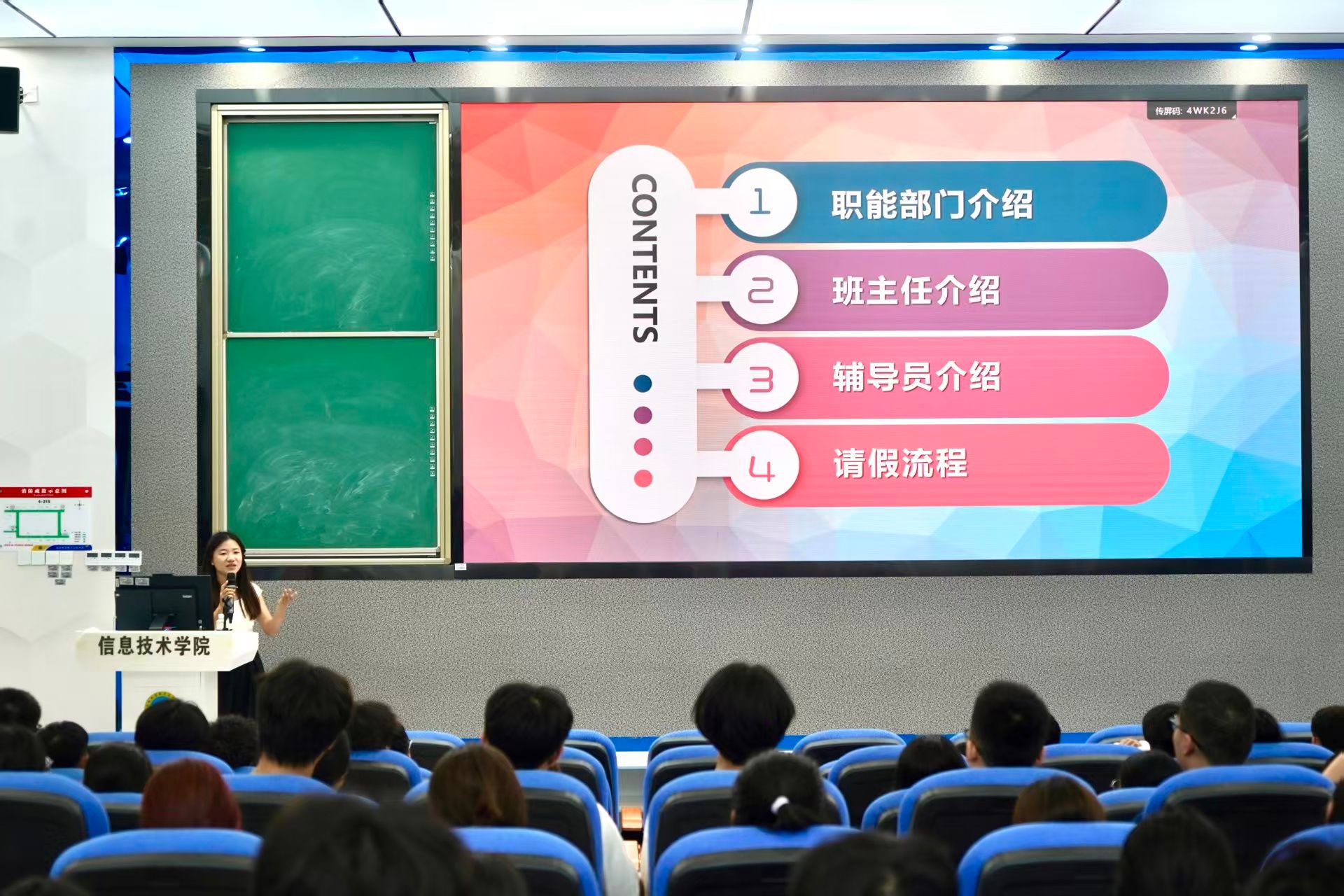 讲座伊始,吴淑亲老师以“校园管理与日常规范”为主题,结合新生入学后的实际需求展开讲解。她从职能部门对接、请假流程、军训要求、班委职责等关键板块切入,重点解读了新生关注的请假制度,明确请假流程,为强化记忆效果,吴淑亲老师采用“讲解—抽问”互动模式,在每部分内容讲解结束后即时抛出问题。