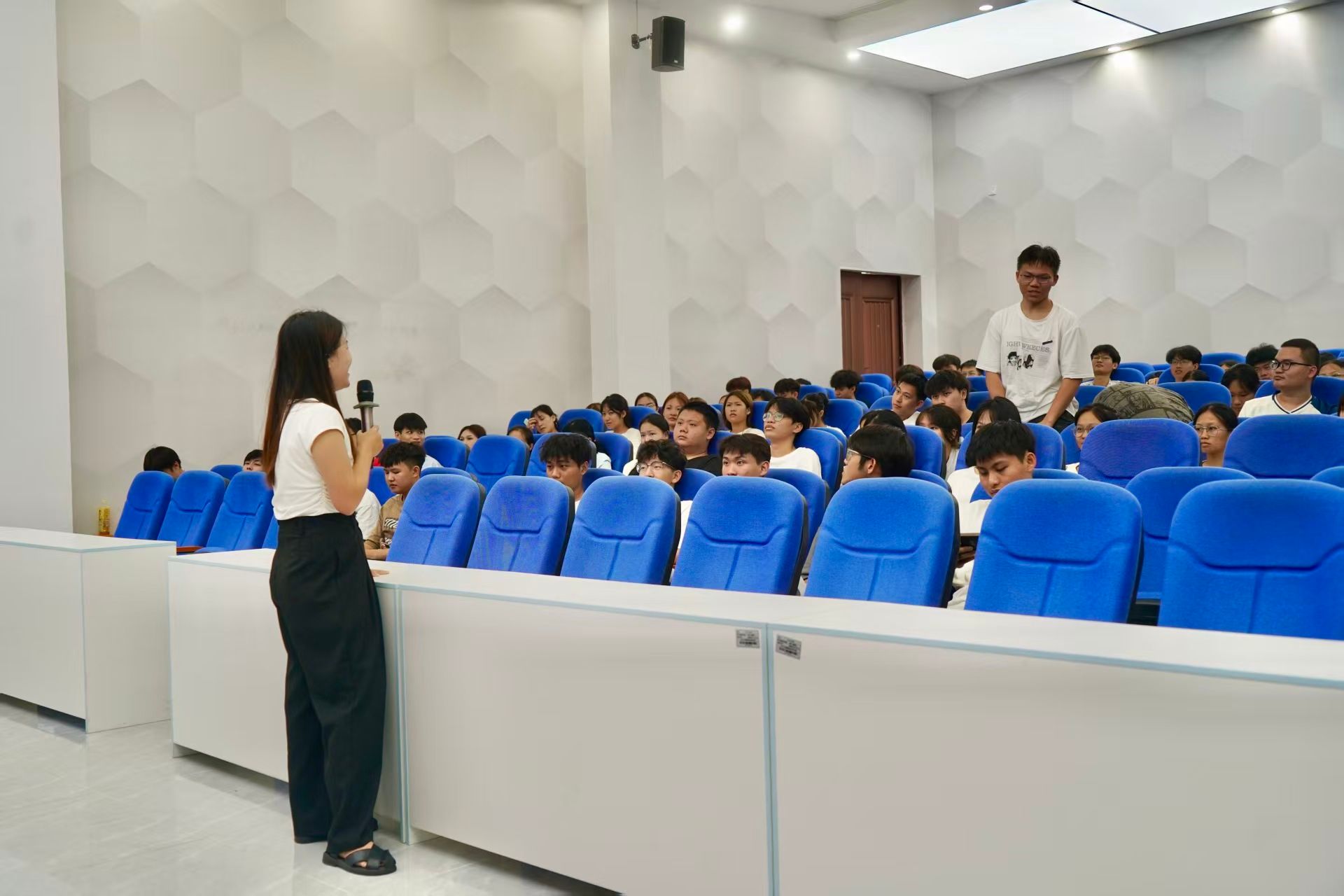 讲座最后,两位老师共同为新生解答疑问,针对“军训请假后是否需补训”“资助申请材料如何提交”等问题逐一回应。新生们纷纷表示,此次讲座内容实用、讲解透彻,不仅厘清了校园管理的关键要求,也消除了对资助政策的困惑,为开启老员工活奠定了坚实基础。