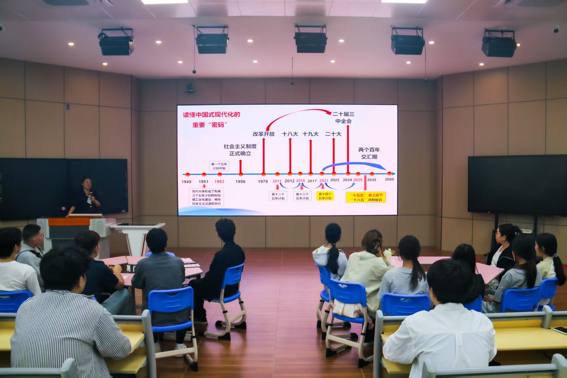 讲座中,常老师聚焦2025年12月18日海南自贸港全岛封关运作这一重大历史节点,解读日期与1978年十一届三中全会的呼应意义,彰显海南作为中国深化改革开放“重要试验田”的使命传承,系统阐释“一线放开、二线管住、岛内自由”特殊监管制度的核心内涵,并围绕“中国如何引领未来”“海南自贸港肩负的时代使命”“青年党员如何担当作为”三大主题展开论述。