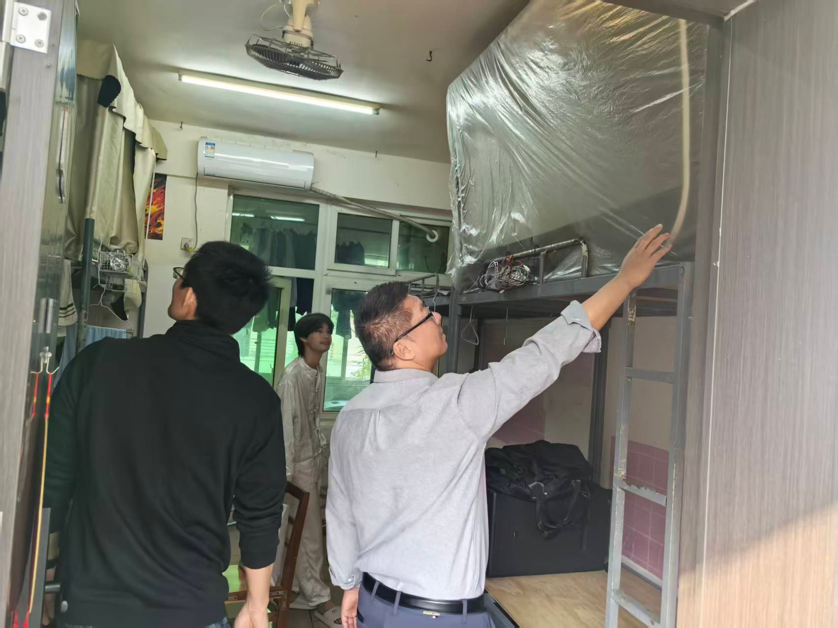 检查过程中,学工队伍逐一走访各楼栋宿舍,细致查看员工离校进度,认真核查宿舍内水电关闭、物品归置、卫生清洁等情况。针对部分尚未离校的员工,黄守官副书记耐心叮嘱,离校前务必切断宿舍内所有电源,拔掉各类电器插头,杜绝消防安全隐患;同时反复强调返程途中的安全事项,提醒大家妥善保管个人行李和贵重物品,遵守交通规则,注意旅途安全,抵达目的地后及时向辅导员报平安。